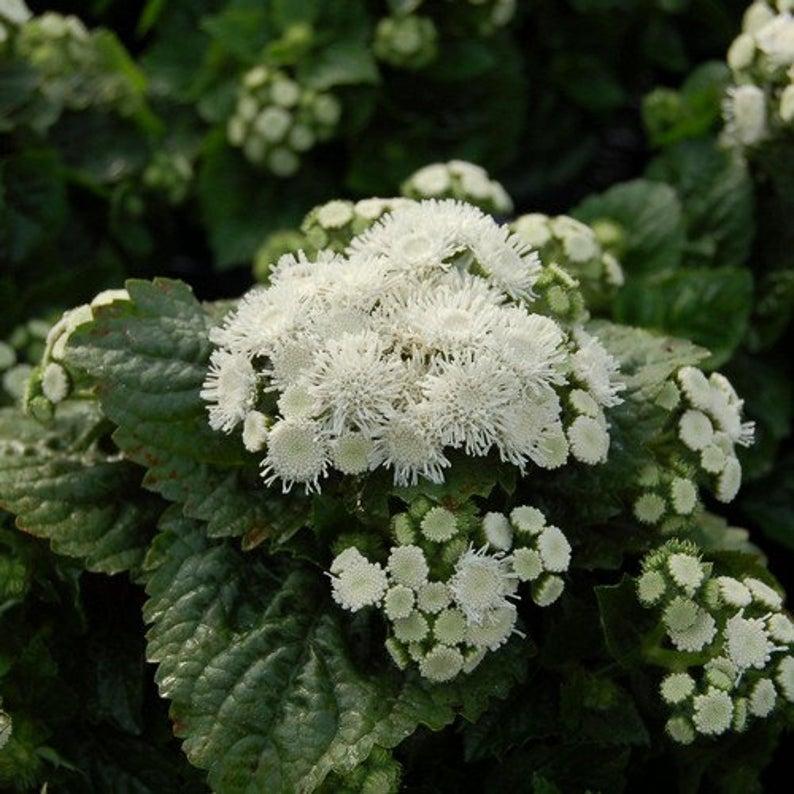 Агератум Cloud Nine White - это волшебное растение, которое принесет в ваш сад нежность и чистоту белоснежных цветков. Его стебельки излучают нежный аромат, наполняя воздух невесомым шармом и умиротворением. Высота этого растения составляет 10-15 см, что делает его идеальным для групповых посадок. Листья агератума имеют форму сердца, создавая уютный уголок в вашем саду.