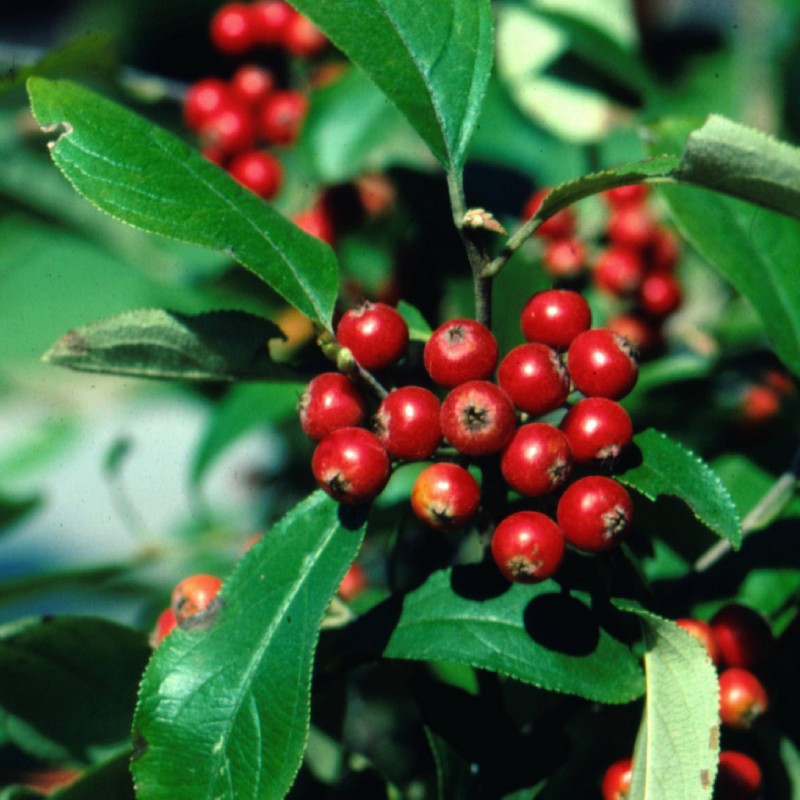 • Очень высокая декоративность растения в осенний период – листья осенью окрашиваются в багряно-красный цвет, на котором яркими пятнами выделяются глянцево блестящие красные ягоды. Весной же арония может похвастать обильным цветением белыми цветами.