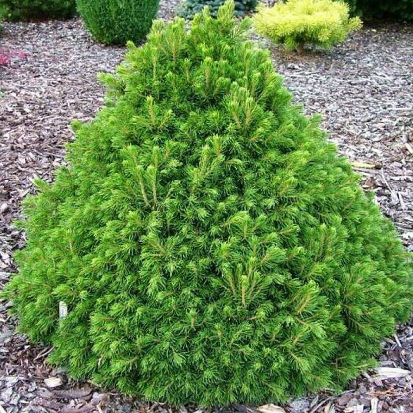 Саженцы ели обыкновенной Томпа (Tompa) без особых хлопот вырастут в миниатюрные хвойные пирамидки, не нуждающиеся в постоянной обрезке. Растение растет медленно, высота взрослого крупномера всего 1,5 м. Привлекают внимание ярко-зеленой мелкой хвоей и кроной в форме широкого конуса. Ветвление очень густое, из-за хвои почти не видно побегов. Ель обыкновенная Томпа хорошо подойдет для переднего плана или маленьких садов. Достоинства: