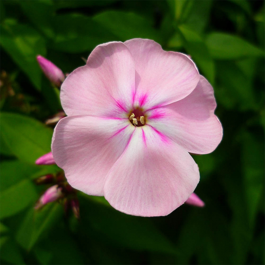 Неприхотливая рассада флокса метельчатого Цвет яблони нуждается лишь в частых поливах и периодическом внесении удобрений. Этот сорт светолюбив, но хорошо переносит полутень. Нежные лепестки не выгорают на солнце, сохраняя розоватый цвет. Чтобы избежать загнивания корневой системы, не следует переувлажнять кусты.