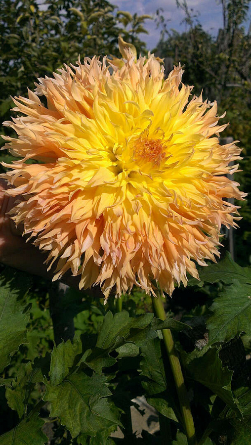 Георгина бахромчатая мингус джошуа - это великолепное растение с желтыми цветками, окрашенными абрикосовым оттенком. Ее стебель прочный и устойчивый, достигает высоты до 110 см. Листья георгины бахромчатой мингус джошуа имеют интересную форму и яркий зеленый цвет, что делает растение привлекательным на любом садовом участке.