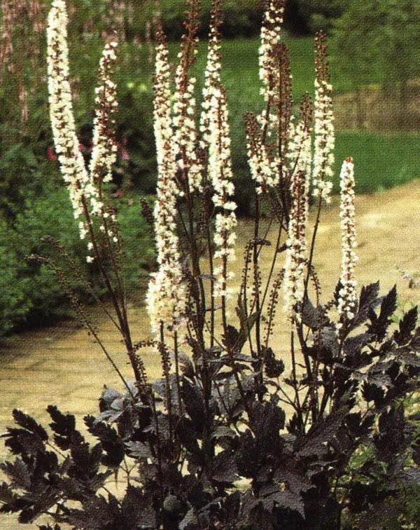 Рассада Клопогона ветвистого Brunette (Брюнет) вырастает в настоящее украшение вашего сада. Высота растения достигает четырех метров в высоту и служит прекрасным фоном для групповых посадок или естественным ограждением внутри сада. Цветки брюнета белые, они выделяются на фоне фиолетового основания и фиолетово-коричневого стебля, и именно этим это растение особенно любимо садоводами. Зацветает в конце лета, в начале осени. Ягоды его ядовиты. Лучше всего высаживать свежесобранные семена, тогда их всхожесть очень высокая. Особенности: