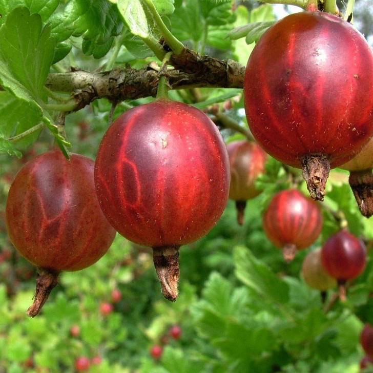Саженцы Крыжовника обыкновенного Белорусский красный (Ribes uva crispa) многолетний кустарник, среднерослый и раскидистый. Крона в виде прямостоячих или арковидных ветвей. Лучше всего высаживать в плодородную, хорошо увлажненную, нейтральную или слабокислую почву. Молодые кустарники необходимо укрывать на зимний период. Не переносит засухи. Плодоносить Крыжовника обыкновенного Белорусский красный начинает на 3 год после высадки в открытый грунт, красными, кисло-сладкими ягодами. Плоды можно употреблять как в свежем виде, так и в переработанном. Например, заморозить или приготовить джем, мармелад, варенье или вино.