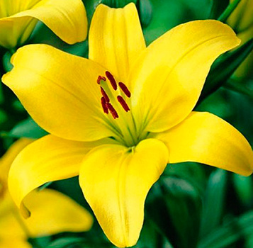 Саженцы и рассада лилии азиатской Жиронде (Lilium) способны оживить даже самый бледный цветник экзотическим канареечным окрасом своих цветов. Ненавязчивым дополнением служит зеленоватая сердцевина и крупные коричневые тычинки. Высокие стебли просто укрыты массивными цветками и бутонами. Аромат приглушенный, иногда может показаться, что эти цветы вообще не издают запаха.