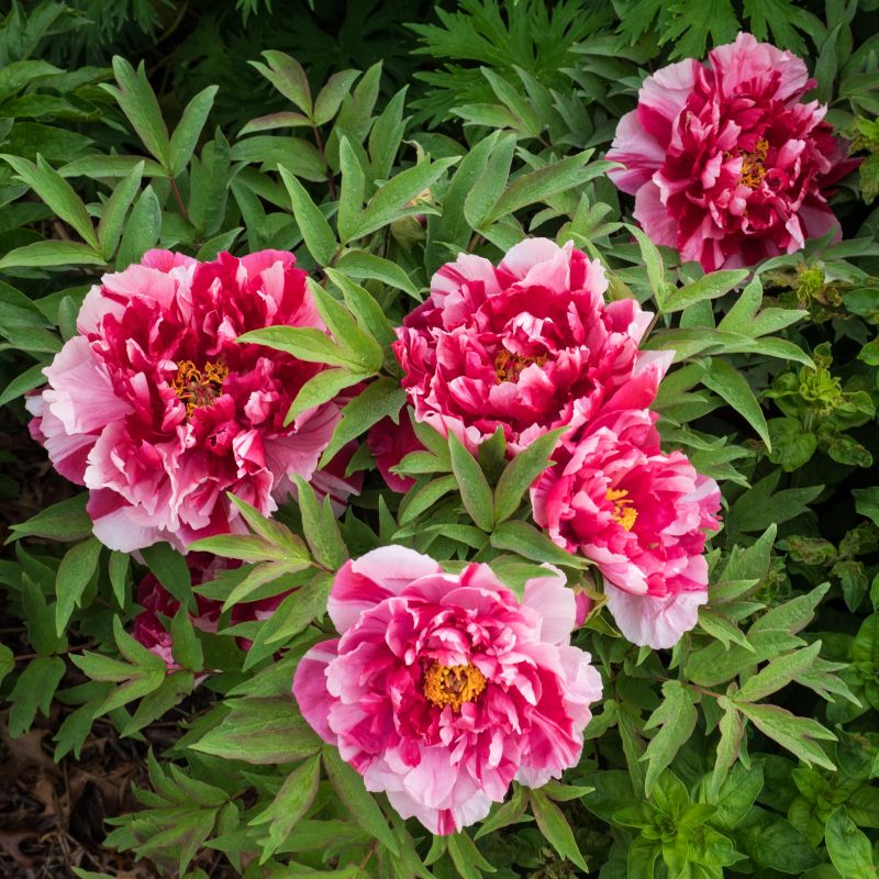 Саженцы пиона древовидного Пинк Ред (Paeonia suffruticosa) нетребовательны к почвенным условиям, но лучше всего растут в плодородном, щелочном, хорошо дренированном грунте. Для обильного и продолжительного цветения размещать растения следует на солнечных, защищенных от ветра участках. Культура неприхотлива в уходе, отличается устойчивостью к болезням и вредителям. Цветут пионы древовидные Пинк Ред с июня до июля. Цветы крупные, диаметром до 17 см. Окраска бутонов ярко-розовая. Используют культуру преимущественно в одиночных посадках на фоне газона или низкорослых многолетников.