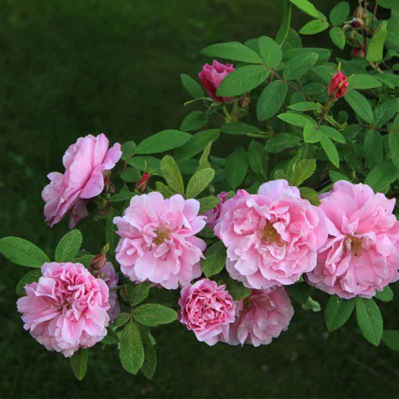 Саженцы розы парковой Therese Bugnet отлично растут на солнечных и частично затененных участках с плодородной, увлажненной, нейтральной почвой. Сорт неприхотлив, отличается высокой зимостойкостью и не требует укрытия даже в самые суровые зимы. Куст мощный, высотой до 2 метров и шириной до 120 сантиметров, с многочисленными побегами, которые почти без шипов, но густооблиственные. Цветение продолжается с июня до поздней осени. Цветки диаметром 7-8 см, нежно-розового окраса, полумахровые, с сильным ароматом, одиночные или собраны в кистях по 3-5 штук.