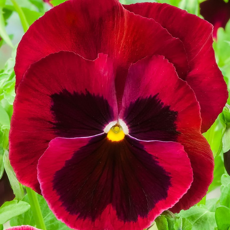 Виола крупноцветковая дельта ред виз блотч - это удивительное растение с красно-черными цветками, которые поражают своей красотой и изысканностью. Высота этого растения может достигать 10-15 см, что делает его идеальным для групповых посадок в солнечных и полутенистых местах. Листья виолы имеют форму сердца, что придает ей особый шарм и неповторимость.